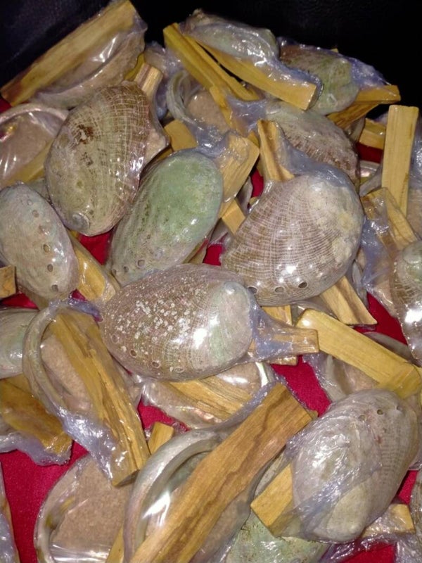 Aanstoken Palo Santo leggen in abalone met een lage zand